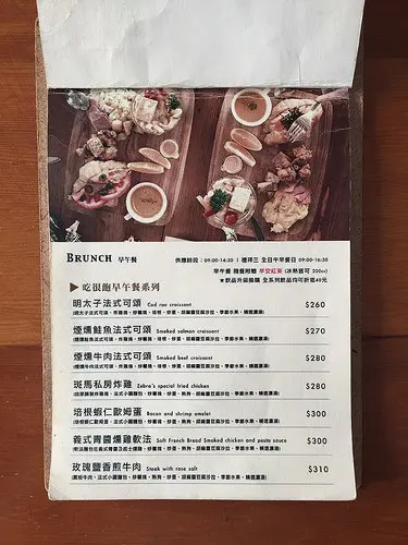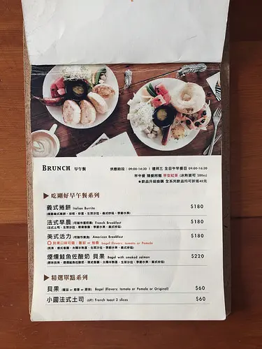 店內早午餐供應時段為9:00-14:30,週三為全日早午餐日9:00-16:30