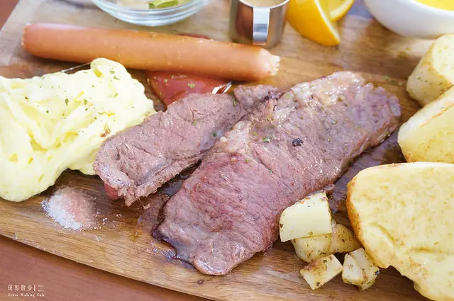 牛肉有些許油花、不算太厚,煎到肉質略帶粉嫩,我覺得有些過油