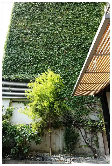 喜歡右手邊這片爬滿綠藤充滿生意的牆