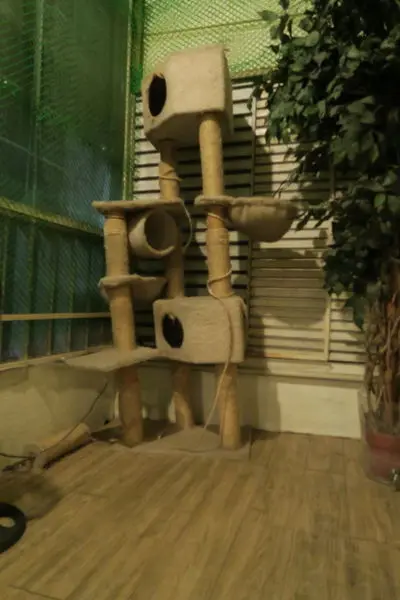 一個角落有一座好高的貓跳台