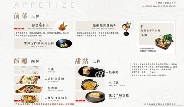 套餐內容都有含前菜、飲品和甜點