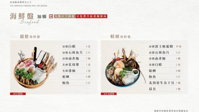 海鮮盤可以示意請服務人員幫煮