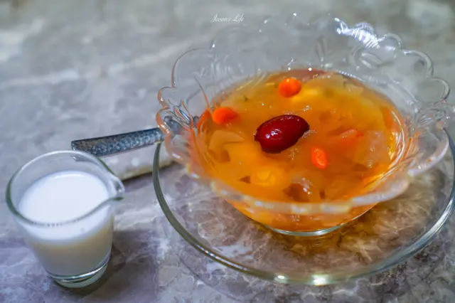 充滿膠原蛋白的甜湯,有白木耳和枸杞