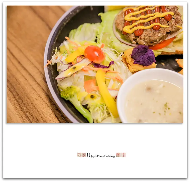 Joy趁他菜色上桌的食後偷問了一下店員有關於這漢堡的小道消息
