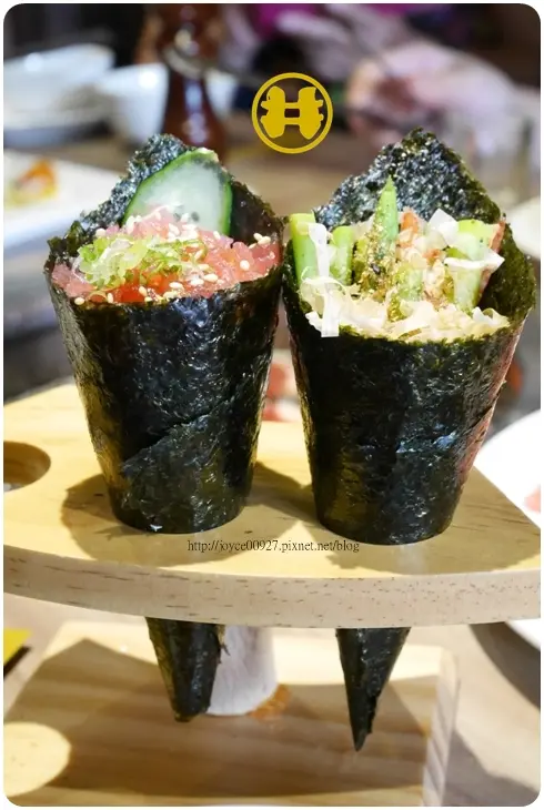 手卷有吃的時效性不宜久置要趁鮮趕快品嚐,不然海苔接觸空氣比較容易沒有脆度