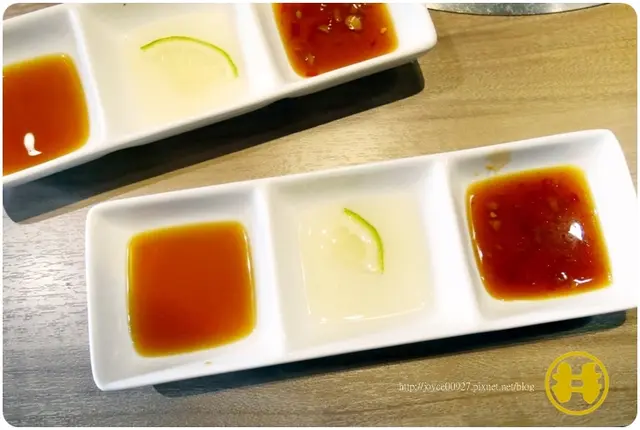3種不同風味的沾醬搭配起肉品來吃會有不同的滋味