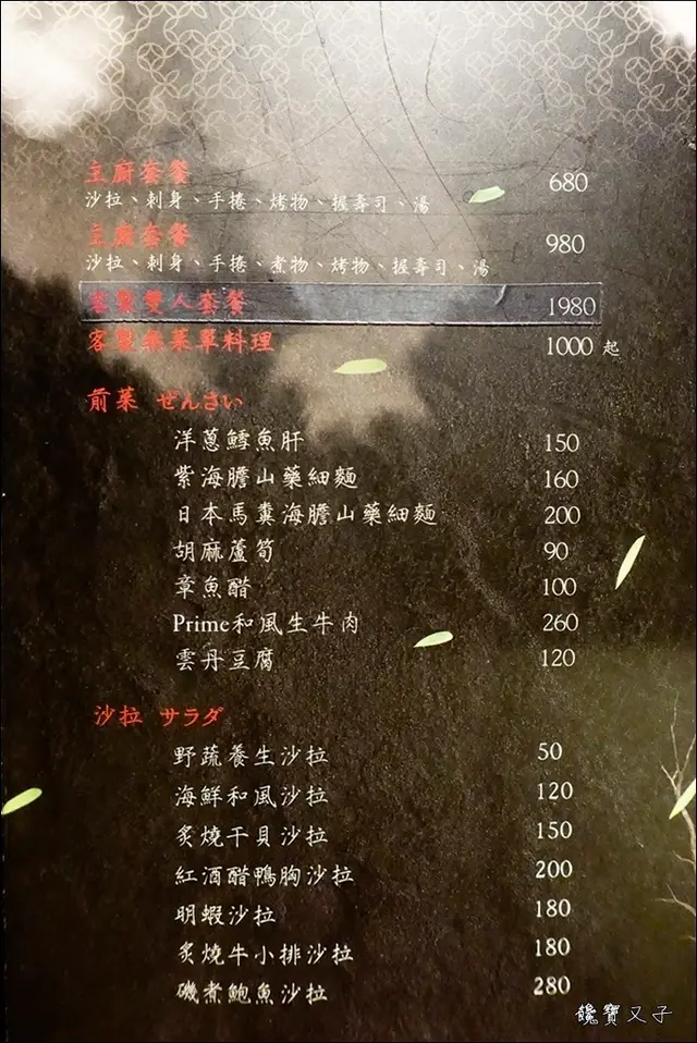 *我們這天點了主廚套餐680元、980元各一套,因此我有在餐點後面註明。