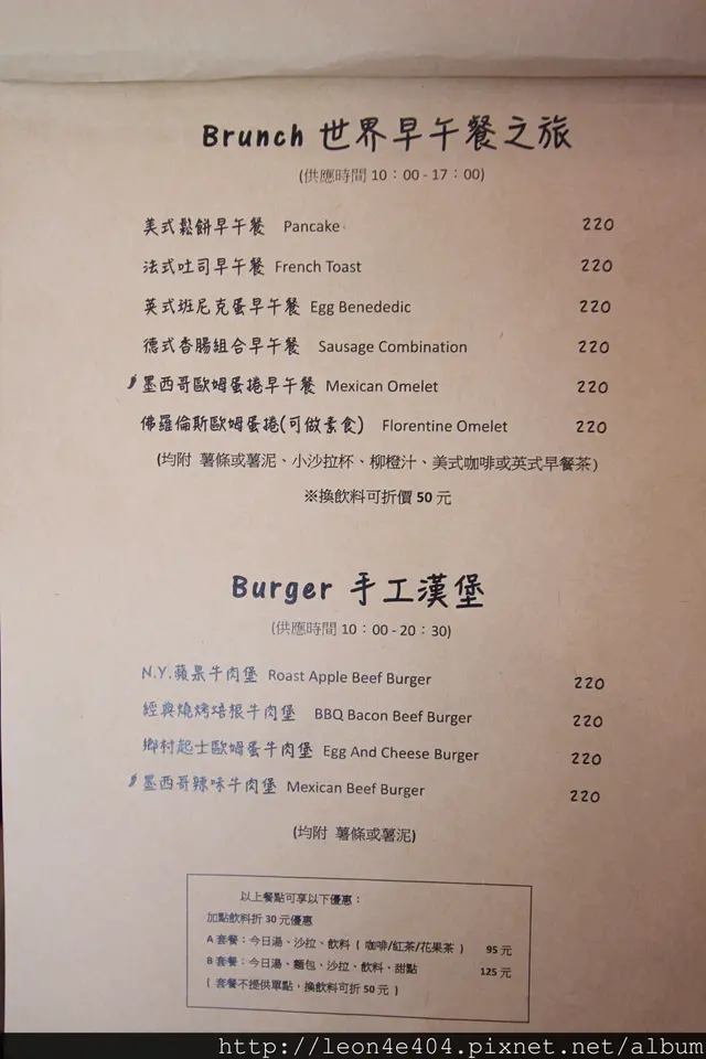 ▼ 主餐部份,需稍微留意各不同的供應時間(早午餐、漢堡 均一價220誒!)