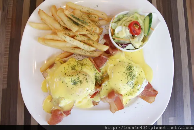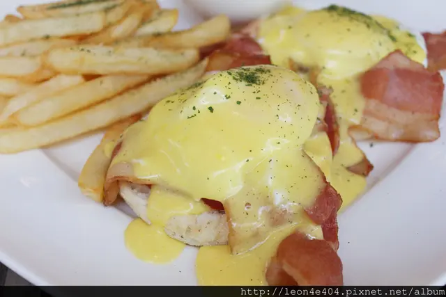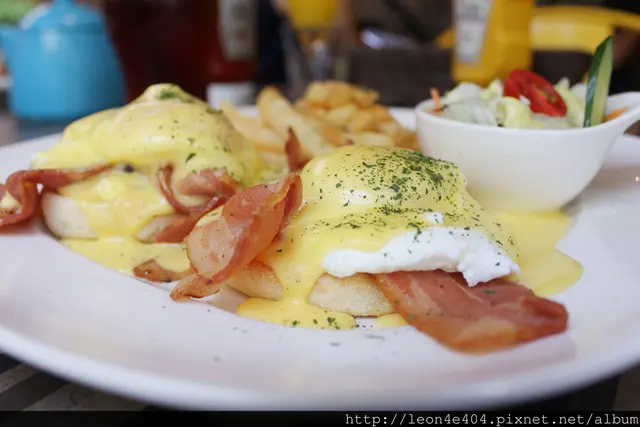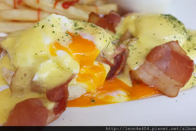 ▲ 馬芬麵包墊上培根和水波蛋,再淋上荷蘭醬,該有的用料也都用上了