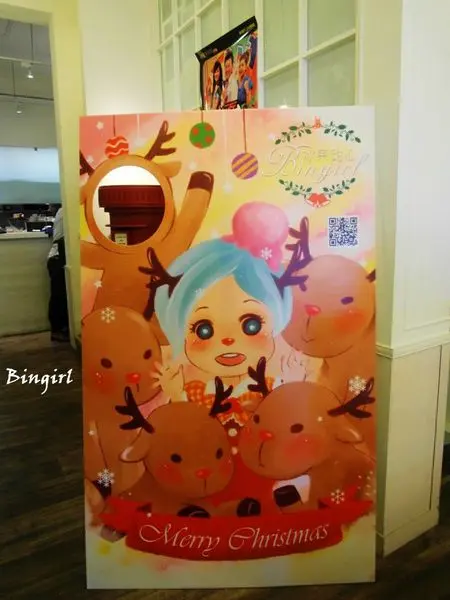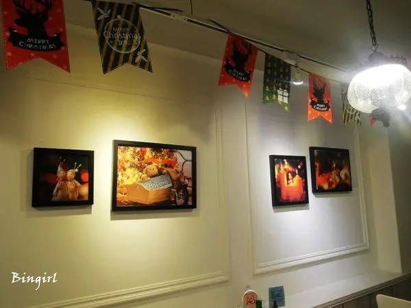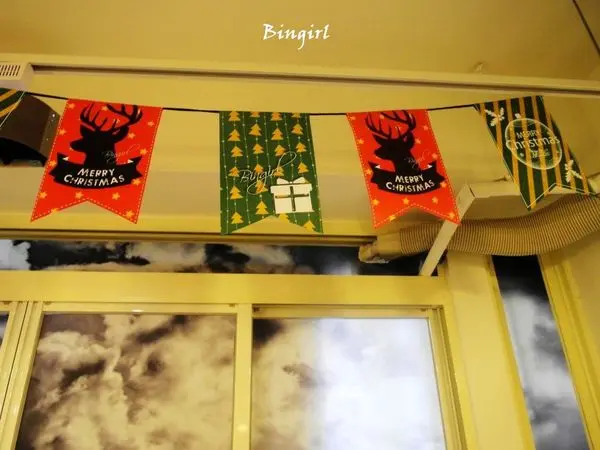 前往二樓的用餐區,牆上的圖畫跟布條都變成了聖誕節的風格