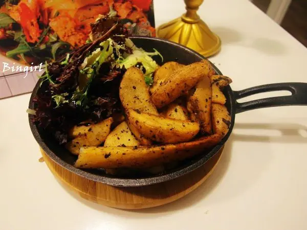 薯條有別於一般看到的長條形薯條,是有帶皮的馬鈴薯