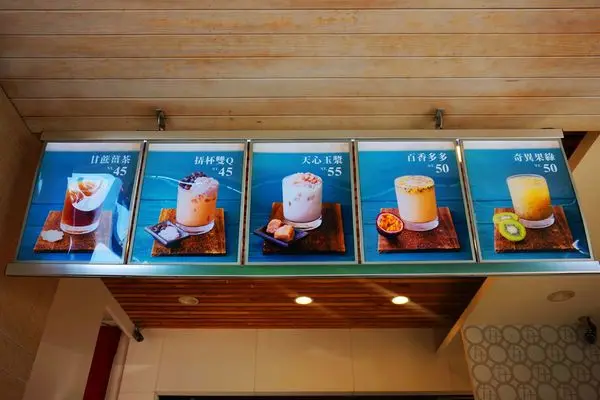 店家的天花板上掛著一排的人氣飲品