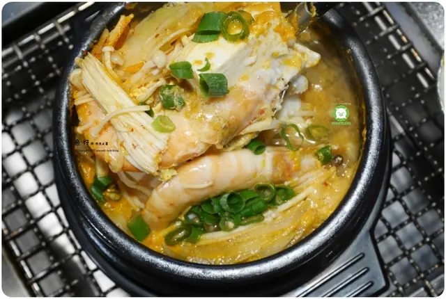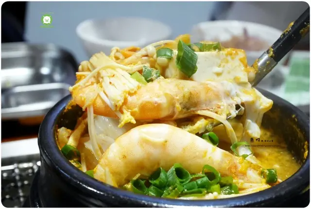 蝦子、豆腐、泡菜、韓式年糕、豆腐、洋蔥...等豐富的配料