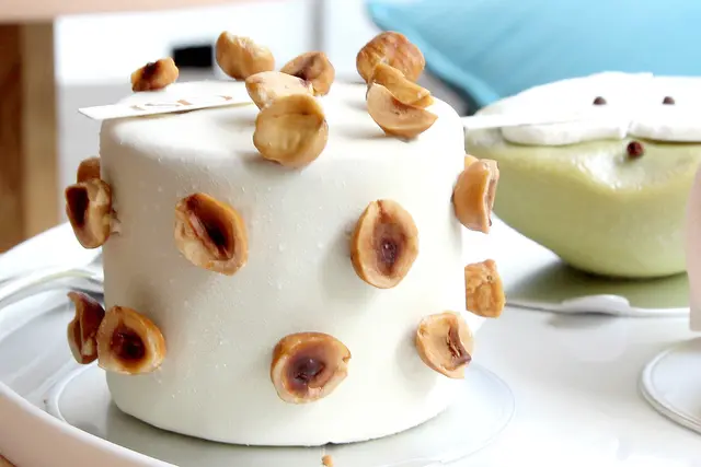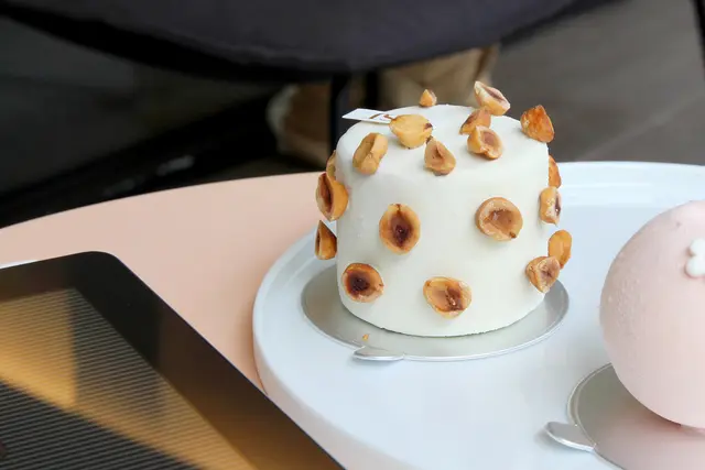 使用榛果bahibe慕斯、TANNEA鮮奶油醬、日本柚子小柑橘、榛果脆餅