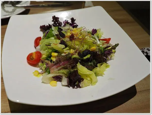 前菜會先送一盤生菜沙拉,很不幸的試營運期間,東西沒有很齊,所以只有油醋醬可以選,帶有一點點淡淡梅子的味道。