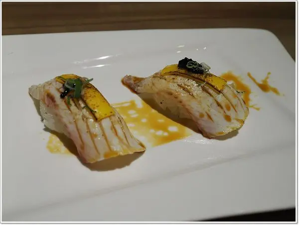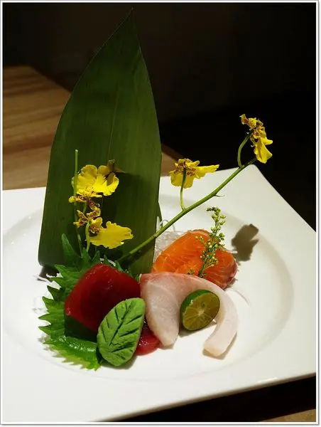 哎呀又有插播! 這個生魚片是招待的,賺到了…! 雖然是常見的魚種,但招待的吃起來特別爽。還蠻精緻的,芥苿不太會嗆,還有造型。但這是可遇不可求啦,因為某些意外才有的。
