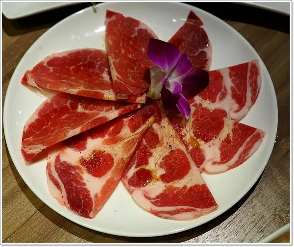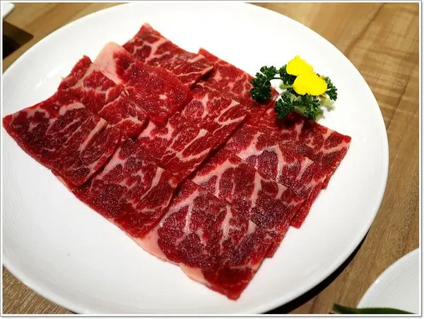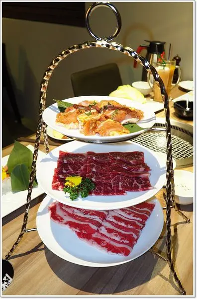 第一次會先送這三盤肉! 肉的品質新鮮度都很好,至少吃完隔天平安的沒鬧肚子,吃烤肉很容易因為沒烤熟或是肉不新鮮造成身體的負擔。不過也許是波妞家很強胃也說不定啦,但肉確實是好吃的肉! 也不會說切得很薄影響口感。而且還用英式三層下午茶的盤子裝,吃燒肉也可以很有氣質。