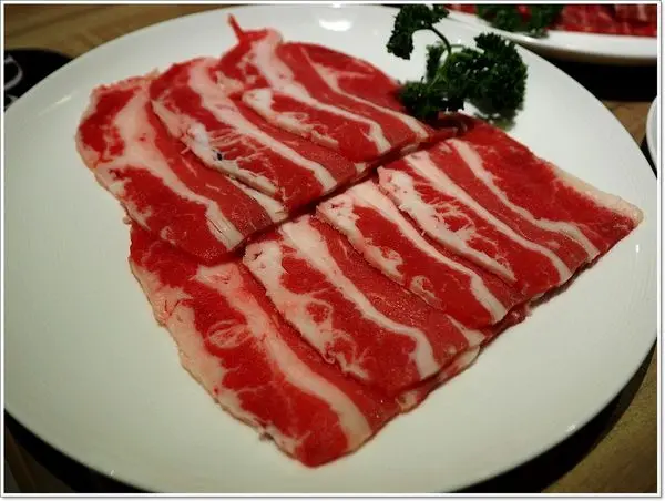 「美國貝身牛小排」! 牛肉的厚度約有50元銅板厚,這樣比較不會烤破。看這油花分佈的很均勻,應該是好牛吧…!