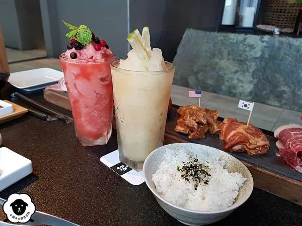 套餐搭配的飲品是90元,我們選擇加價升級成季節莓果冰沙 (NT. 130)和翡翠蜂蜜冰沙 (NT. 130),小綿羊比較喜歡後者,前者喝起來有種藥味QQ