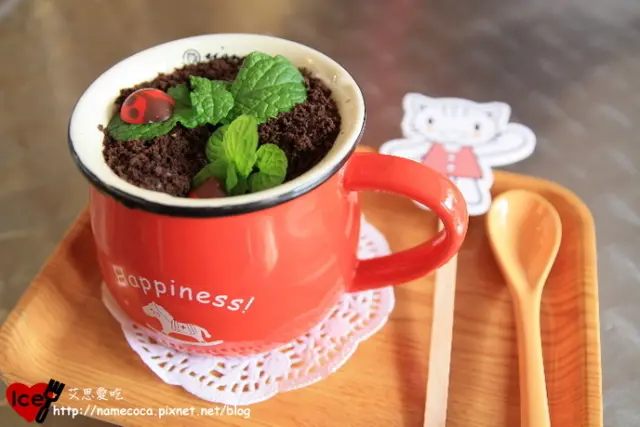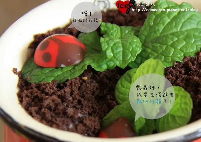 其實這個盆栽奶茶還有一則小故事,就是服務員端上時,瓢蟲哥竟然潛進去土壤了!