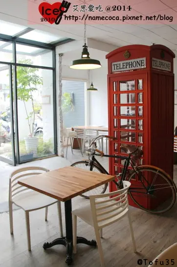 一進門的裝置藝術『英式電話亭與單車』與暖色裝潢,感覺就像置身在咖啡店,