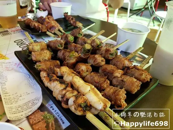 滿滿的串燒大平台,小綿羊覺得肉串的表現最好,當天吃了裡頭包水蓮、韓式泡菜和蔥段,每一款都好吃。