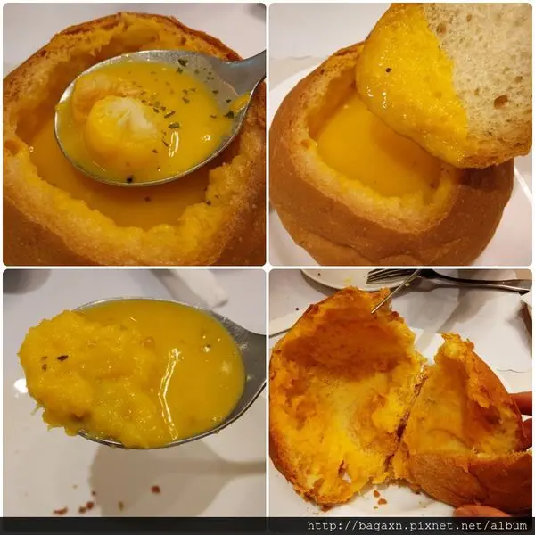 湯的內容則是新鮮南瓜泥及滑順鮮奶油製成的南瓜濃湯,