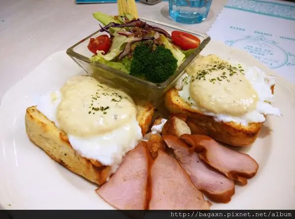 用刀叉去戳弄他可看見水波蛋的晃動,很明顯裡面是我最愛的半熟蛋~~