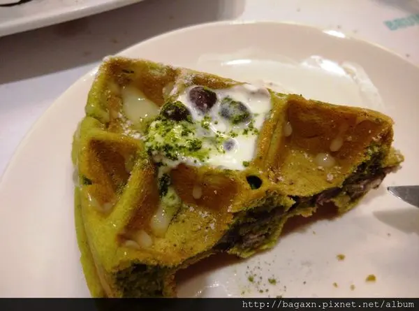 且整塊鬆餅就是我要的口味--抹茶,非常特別!