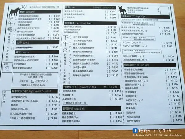下午茶為14:00後供應,輕食及沙拉的部分則是全天供應,這裡也有提供狗狗鮮食唷