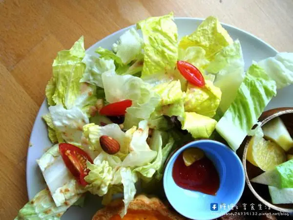生菜沙拉的部分原本是附上店家自製的油醋醬,因糖糖本身不太喜歡吃油醋醬