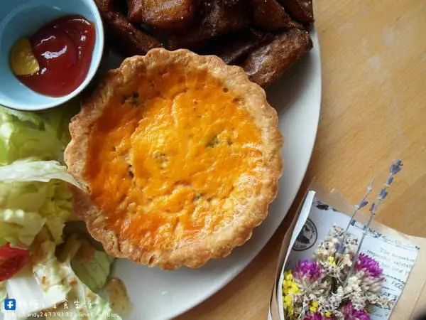 鹹派的派皮還蠻酥的,不會到很油膩,整體吃起來番茄偏重,起司的香氣沒有很明顯說