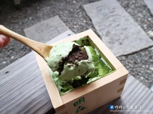 用木匙先來挖一口嚐嚐,濃濃的抹茶香味在嘴裡蔓延,吃起來有點像慕斯,好細緻的口感