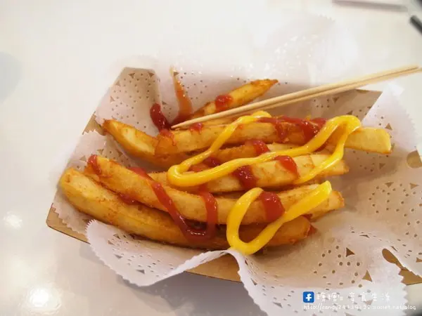 結果原來是淋上起司醬跟番茄醬,份量也比較精緻,薯條很酥脆,起司醬再多些更好