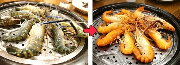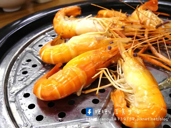 泰國蝦經過蒸食後,呈現出橘裡透紅的模樣,肥嘟嘟的看起來超可口的