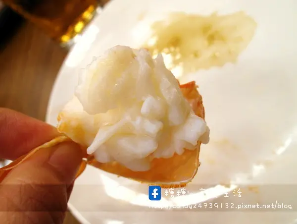 雪白彈牙的龍蝦肉,口感非常紮實,小小一塊,不用佐料,就可吃出龍蝦的鮮甜滋味