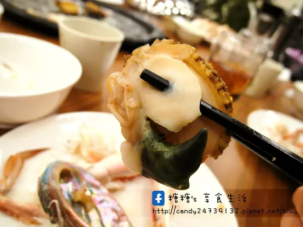 話說九孔鮑魚裡面的肉和殼黏超緊的,費了一番功夫才把肉拔起來..肉質紮實Q彈建議分兩口吃,可別一口塞,很容易噎著了,記得底下黑黑的內臟要去掉,不可食用唷