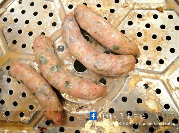 別以為清蒸的香腸沒什麼味道,他的口味可不輸給烤的或煎的呢,裡面紅紅的是正常的唷口感紮實,帶著淡淡的蔥花與胡椒的香氣,這道是料理是口味最重的,所以才擺在壓軸這