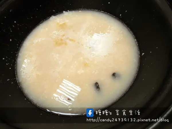 以為蒸食完料理就沒了嗎,別忘了當初放在底層的白米,經過各個海鮮湯汁的蒸煮後已是滿滿精華的海鮮粥,還沒入口,就聞到濃濃的海鮮味,撲鼻而來,讓糖糖等不及了