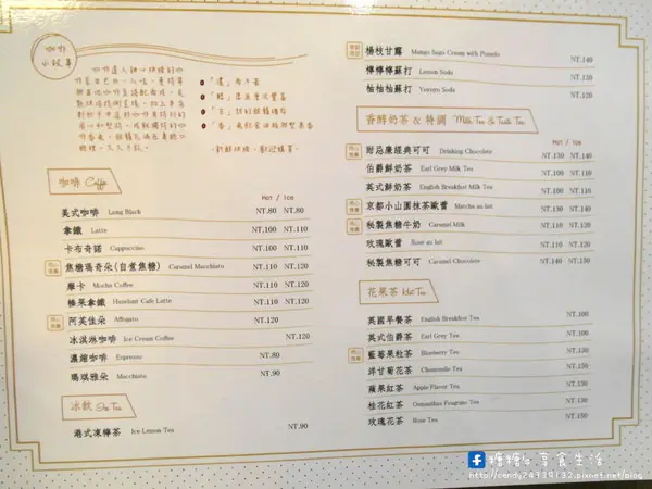 除了甜點外,甜忌廉也有咖啡及其他飲品可以參考