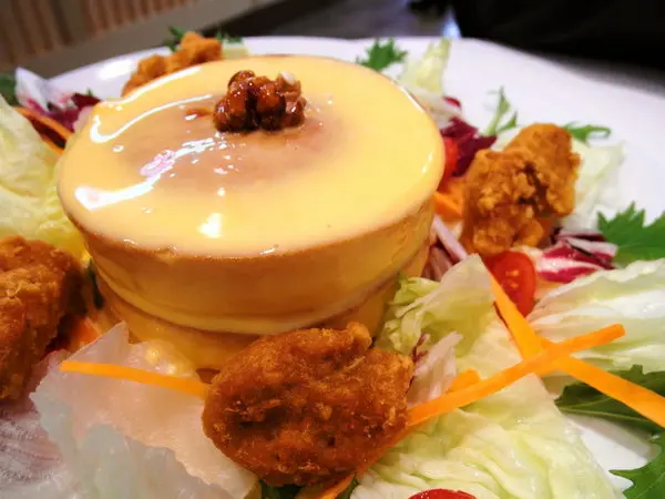 搪揚雞起司鬆餅 299元 期待已久的鬆餅終於登場囉光看那如岩漿般的起司醬源源不絕的流下,就令人垂涎三尺阿 除了鬆餅外,還有搪揚雞及生菜沙拉,內容超豐盛的