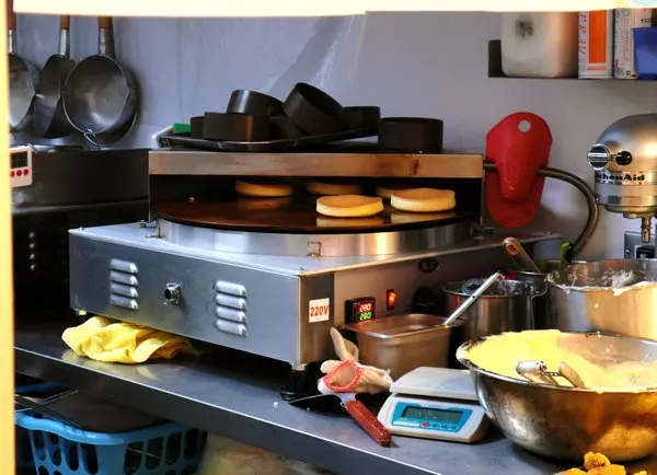 秘訣就在這台造型非常特別的鬆餅機,不添家發泡粉只用了台東有機蛋、日本進口鬆餅粉及法國乃由下去製作一次只能製作9片,請大家耐心等候唷