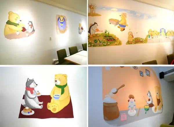 牆壁上還有可愛的動物插畫,一同做鬆餅及野餐的可愛模樣,真的超萌的 各個角落處都有可愛的小熊標示,如果有做成貼紙,糖糖也想在貼在家裡頭 二樓採落地窗設計,煦煦陽光照射進來,讓人感到非常溫馨舒適,就像回到家一樣空間比較寬廣,座位也較多一些,不過桌子的距離有點近 這個造型壁燈超可愛,腳還可以隨意變換姿勢,讓糖糖想到皮克斯動畫那盞檯燈 Menu