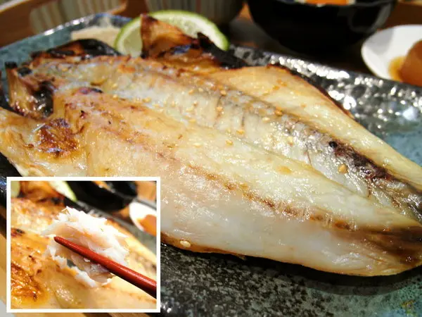 一夜干的肉質非常鮮嫩細緻,鹹香味十足,不會讓人感到油膩或有可怕的魚腥味提醒大家別看這一夜干細皮嫩肉的,裡面可暗藏了許多小刺,請大家小心食用噢