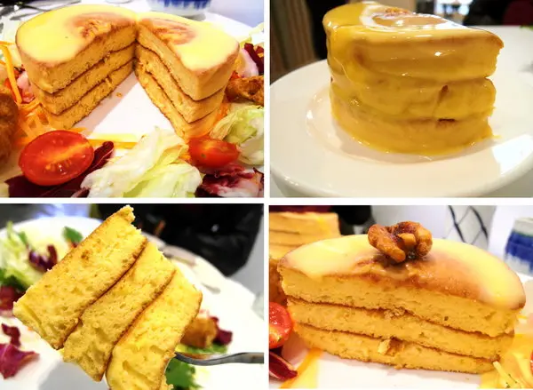 超厚實的鬆餅,足足堆疊了三層之高呢 口感非常濕潤蓬鬆,吃多了也不會覺得太乾搭配上頭的鹹香起司,真的是太好吃了,令人回味無窮押