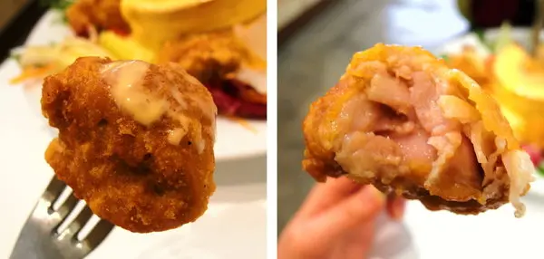 裡面的搪揚雞一共有4塊,外皮炸得非常酥脆,裡面的肉質更是鮮嫩多汁一口咬下去,裡面的雞汁立刻噴得滿嘴都是呢
