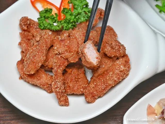 紅趜燒肉算是今天非常熱門的配菜之一,吃完一盤還不夠,還直接再加點一盤呢,外表炸得香酥香酥的,一口咬下去先是感受到紅趜的香氣在嘴巴蔓延開來,隨後多汁軟嫩的燒肉搭配外皮香酥的口感,真的不自覺會一口一口接著來吃呢
