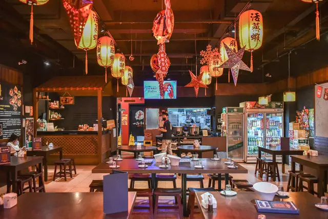 坐擁兩層樓的一品活蝦漢口店,用餐空間真的很寬敞,店內裝潢以大量木質元素來打造,加上燈籠營造出台式復古的微醺氛圍。