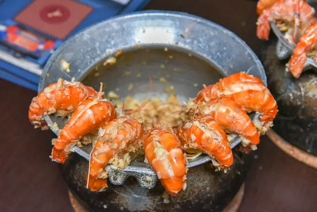 21種口味的泰國蝦,每一隻都很肥碩飽滿,必吃的蒜頭蝦有滿滿的蒜末沾附在蝦殼上,同時也吸收了蒜頭的香氣及精華,因此每一口都享受得到迷人但吃完嘴巴不會有異味的蒜香,加上肉質扎實非常彈牙的蝦肉,讓人吃到欲罷不能!