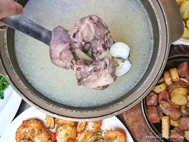 最後湯品的部分糖糖選了店裡頭的人氣蒜頭蛤仔雞湯,使用特選的雞腿肉切成塊,再將整顆大蒜煮到軟綿,入口即化,最後加入了大顆蛤蜊使湯頭變得更鮮甜